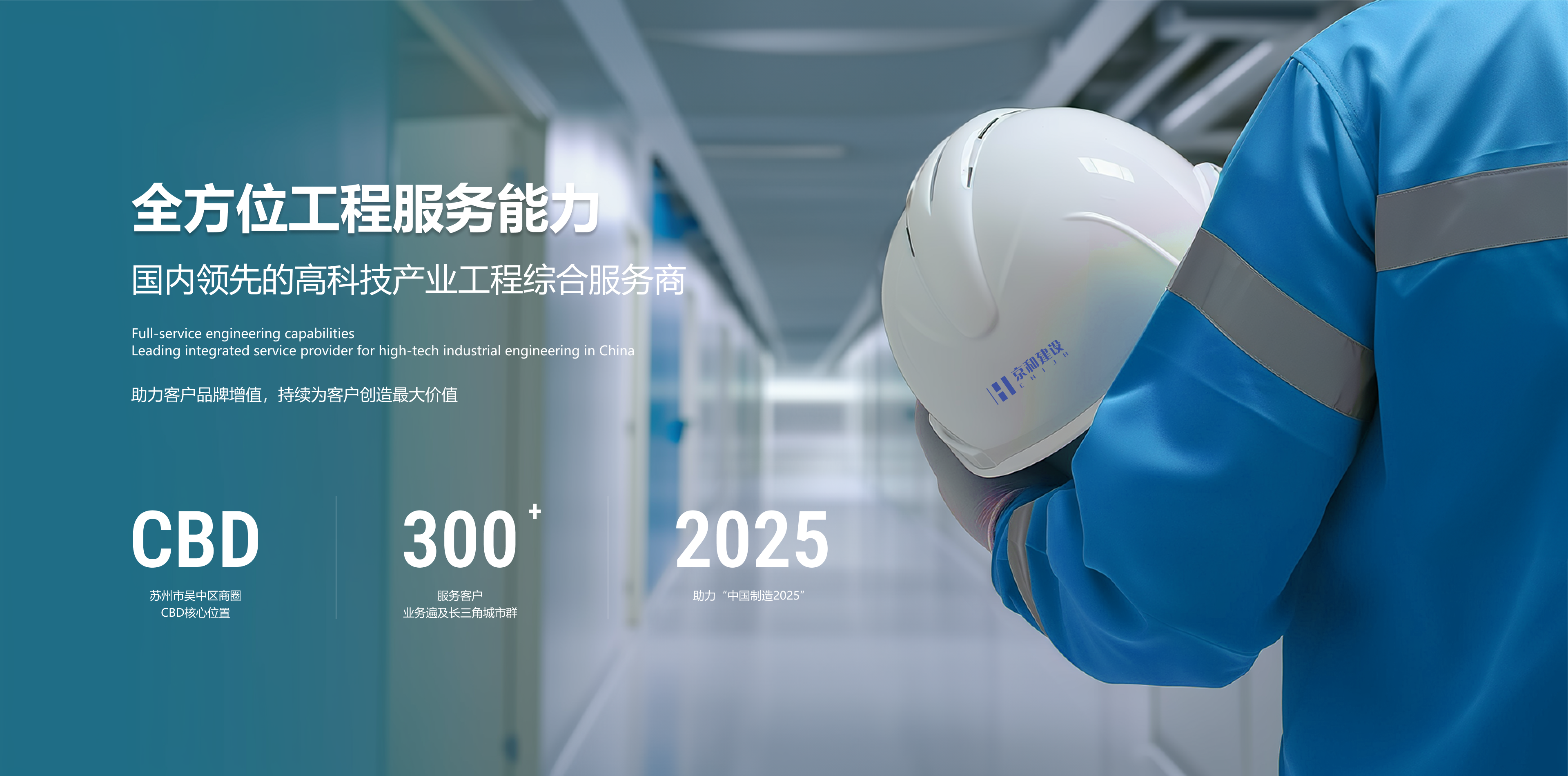 蘇州京和建設科技有限公司(簡稱“京和建設”),成立于 2018 年,位于蘇州市吳中區商圈 CBD核心位置,服務內容涵蓋工程咨詢、規劃設計、施工建設、實驗室認證和售后運維等,是一家專注服務于電子半導體、生物醫藥、化工環保、新能源等高科技領域的總包工程公司,是國內領先的高科技產業工程綜合服務商。服務客戶 300+,業務遍及長三角城市群。